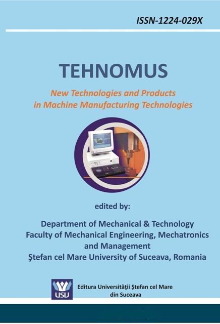 TEHNOMUS Journal - New Technologies and Products in Machine Manufacturing Technologies este o revistă cu frecvenţă de apariţie anuală, editata de Departamentul Mecanica si Tehnologii, Facultatea de Inginerie Mecanica, Mecatronica si Management, Universitatea Ştefan cel Mare SUCEAVA, P - ISSN-1224-029X, E - ISSN-2247-6016. Revista este indexata in urmatoarele baze de date: IndexCopernicus, Ulrichsweb, EBSCO, Scipio.